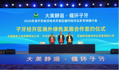 会议还举行了天津子牙经济技术开发区境外绿色发展合作签约仪式,天津子牙经开区与中国路桥工程有限责任公司以及巴基斯坦威湃再生资源有限公司举行签约。在重点项目集中签约环节,天津子牙经开区分别与中远海运集装箱运输有限公司、中节能节能科技有限公司、欧冶链金再生资源有限公司、联美集团有限公司、中国检验认证集团、联合赤道环境评价股份有限公司签署项目投资协议。